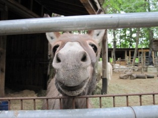 | Check this out! Dottie left the gate open to my stall! Sol and Donk E wasted no time in rushing in to eat the rest of my food! |  |