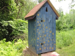 | This is the outhouse Dottie and Joe built for themselves! Dottie stained it blue with purple trim, and glow in the dark stars so you can find it in the dark! |  |