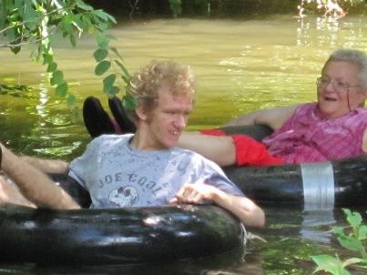 And Joey, here! He wore his happiness all over his face! He was just loving the peaceful, quiet floating! He leaned back and watched the tree tops go by!