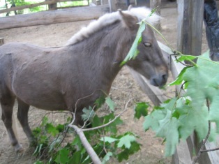 | This cut down tree is pretty good! Nice fresh leaves from the top...Even with my neck...I wouldn't be able to reach them! |  |