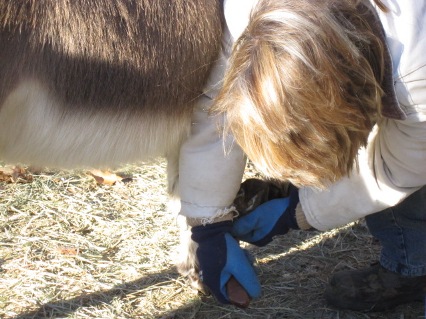 | Once Penny snips off the over growth with her snips, she has to file it flat so my hoof is even! She has a big file to do this! | .JPG) |