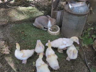 Dottie said I'll be able to go back in with the girls in the fall! She said Dr. Teddy is gonna neuter me, so I can't make more babby bunnies. She said everyone here on the farm is neutered...except for Momma Cat...she got spayed. And the rooster...if there was a way...it would be done! Once I'm neutered...then the girls will be able to come out and run around, too! |  |