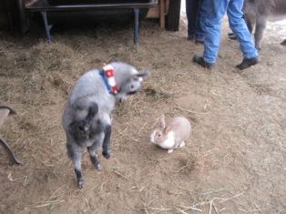 | I knew you'd understand! She'll let me out when she brings the goat in. She's afraid I could step on him or something. I think it's the "or something" she's really worried about! |  |