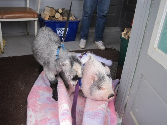 | We're all done with our show...but we don't want to leave! Dottie had to drag us through the kitchen to the door on our blanket! |  |